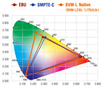 高純度LEDを使用したプレシジョンバックライトと独自の3DLUT(LOOK UP TABLE)を使用したカラーマネジメントシステムにより、放送規格EBU、SMPTE-C、ITU BT.709の色域を正確に再現します。
