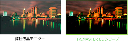 RGB10ビットパネルドライバーと黒の再現性により、RGB各色を1,024階調で正確に表示することができ、映像のグラデーションを滑らかに再現できます。