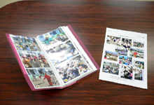 プリントした写真はアルバムにまとめたり、掲示板に張り出して、保護者の方にご覧いただきます。