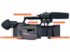 1 本体 2 マイクロホン ECM-NV1(エレクトレット コンデンサー マイクロホン/モノラル) 3 ワイドコンバージョンレンズ VCL-HG0758 4 レンズキャップ付きフード 5 レンズフード LSF-S58 6 フードキャップ 7 大型アイカップ 8 AV接続ケーブル: ピンプラグ×3 ←→ ピンプラグ×3 9 ワイヤレスリモコン:RMT-811 10 i.LINKケーブルストラップ