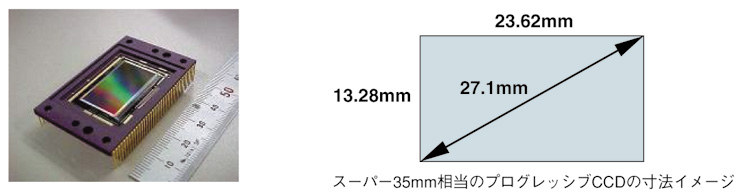 撮像素子にスーパー35ミリフィルムに相当する単板CCD(RGB:1,920×1,080ドット)を搭載。フィルムカメラと同様の被写界深度(ボケ味)を実現しました。