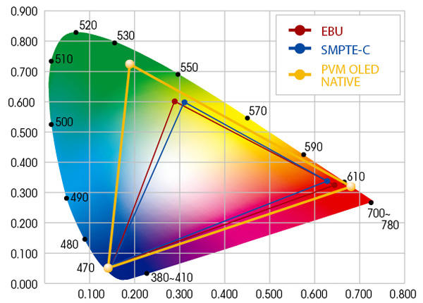 広色域有機ELパネルにより、放送規格ITU-R BT.709、EBU、SMPTE-Cの色域を正確に再現します。