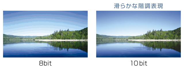 RGB10ビットパネルドライバーと黒の再現性により、RGB各色を1,024階調で正確に表示することができ、映像のグラデーションを滑らかに再現できます。