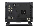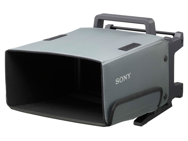 電源は、外部DC駆動(12V)に対応しています。また、バッテリーおよびACパワーアダプターを背面のVマウントに装着することもできます。取り外し可能なスクリーン保護板を装備しており、ENGキットVF-510(別売、遮光フード、キャリングハンドルおよびコネクタープロテクターの3点セット)を装着することも可能で、中継車、ドラマ制作などのフィールド現場でもご利用いただけます。