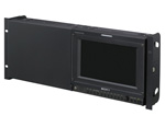 EIAラックマウントに対応しています。マウンティングブラケットMB-531(別売)を使って、EIA19インチラックに高さ4UでPVM-741を2台まで搭載できます。中継車など限られた設置環境にも対応できる省スペース設計です。