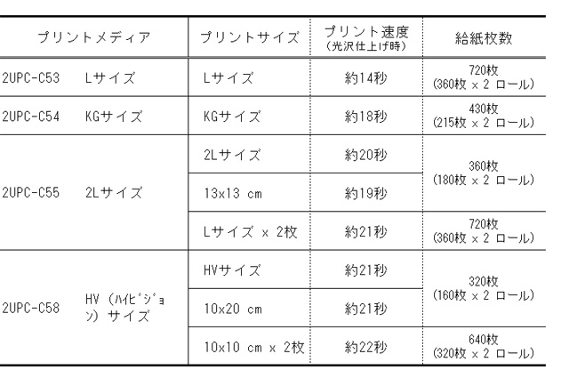 ・Lサイズのプリント時間は約14秒/枚。