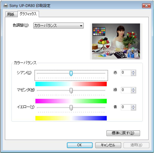 ・ドライバーで簡単に色調整が可能。さらに調整した効果はドライバー上部のプレビュー画像に反映されるので、確認が容易です。
