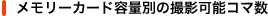 | RAW+JPEG | 54コマ | 103コマ | 208コマ | 312コマ | |