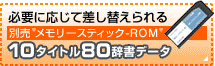 | ● | 別売“メモリースティック-ROM”について記載されている80辞書データとは、10タイトル内の重複を除いた辞書データ数です。(2005年1月現在) |