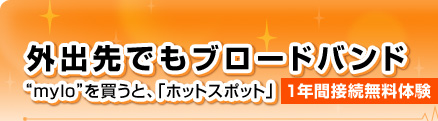 有効化キー入手後、“mylo”にキーを打ち込み、全国にある「ホットスポット」に行けば、その場で無線LANをご利用になれ、その時から1年間無料となります。