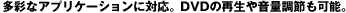 | 「SonicStage」を操作して音楽を楽しむだけでなく、「WinDVD」や「MediaBar」「PicoPlayer」など、バイオ本体のジョグダイヤルで選択できるさまざまなアプリケーションにも対応。アプリケーションの起動やDVDの再生、音量調節も操作できます。また、ドルビーヘッドホン機能を搭載したバイオなら、サラウンド音声でDVDビデオが楽しめます。 | ![]() |