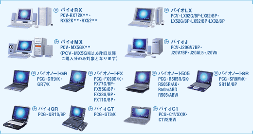 ![]() マイクロソフト社の次世代OS「Windows XP」。下記の対象モデルをご購入のお客様に、Windows XPへのスムーズな移行をお約束する「バイオ Windows XPアップグレードプログラム」をご用意いたしました。