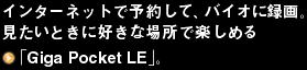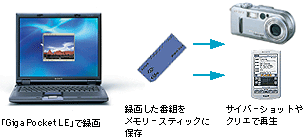 | 動画フォーマット変換機能を使って、「Giga Pocket LE」で録画した映像をソニーのクリエやサイバーショット用の形式に変換。録画した番組をメモリースティックに保存し、ソニーのクリエ*1やサイバーショット*2で再生して楽しめます。 |