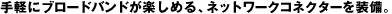 全モデルにネットワークコネクター(100BASE-TX/10BASE-T)を装備。ADSL(高速デジタルデータ通信)やケーブルテレビ回線などへのブロードバンド接続が可能です。
