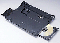 PCG-R505R/GK・R505/ABDには、CD-RW/DVD-ROM一体型ドライブとフロッピーディスクドライブを搭載したドッキングステーション*1を付属しています。豊富な入出力端子群を装備しているため、デスク上ではドッキングしてフルシステムで使用し、出かける時は本体のみを持ち出すといったフレキシブルな使い勝手を実現。着脱も本体の電源を入れたままスピーディーに行えるホットドック/アンドック方式を採用しています。また、電源供給は、ドッキング時はドッキングステーションのDCIN(電源入力端子)から、またドッキングしたまま持ち出す場合は本体バッテリーから供給。ドッキングしたまま持ち歩いてDVD映画を楽しんだり*2もできます。さらに、DVD再生ソフトウェア「WinDVD