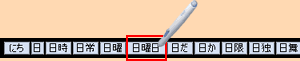 「にち」で始まる単語をリストアップ。その中から「日曜日」を選択します。 |