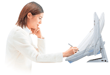 心地よい姿勢でペン操作が行えるように、ディスプレイを深く倒した新しいスタイルを提案。スケッチブック感覚で手描きクリエーションが楽しめます。倒したディスプレイの下にキーボードを押し込めば、より省スペースで描画が可能。さらにキーボードを左右に引き出すことによって、使用頻度の高いテンキーやショートカットコマンドが使えます。 |