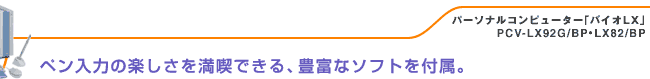 PCV-LX92G/BP・LX82/BPにはもれなく、液晶ペンタブレットの使い方や楽しみ方をわかりやすく紹介したソニーオリジナルの解説書「バイオで楽しく!!液晶ペンタブレットで遊ぼう」を付属しています。 |