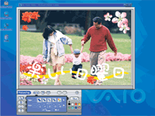 PCV-LX92G/BPには、Web作成・管理ツール「Adobe GoLive 5.0」を装備。ページレイアウトからサイトの管理まで、ホームページ制作を総合的にサポートします。複雑なコード入力が必要なく、素材をドラッグ&ドロップするだけで基本的なレイアウトが可能。リンクの確認など、サイト全体の管理も、「サイトビューウインドウ」でわかりやすく行えます。また、同じくPCV-LX92G/BPに装備の「Adobe LiveMotion」 で、Web用アニメーションづくりもOK。各素材の表示時間を、時間軸にそって指定するだけで、インパクトのあるアニメーションが制作可能。さらに、特定のコンテンツ上にポインターを移動させた時に適用される、ロールオーバー効果も手軽に作成できます。画像が一瞬で切り替わるなど、マウス操作に反応するインタラクティブな楽しさが生まれます。 |