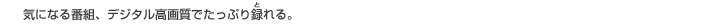 「Giga Pocket」は、テレビ番組を大容量のハードディスクに保存するため、デジタル高画質で長時間録画が可能。見たい番組はどんどん録画して、ハードディスクで集中管理するテレビの新しい楽しみ方を実現します。番組の録画は、画質や録画時間によって3つの録画モードを選択でき、長時間のテレビ番組もハードディスクを効率的に使って録画可能です。また、MPEG2とMPEG1の同時録画機能を使用すれば、MPEG2での録画と同時にMPEG1への変換を行いますので、フォーマット変換に時間がかかりません。 |