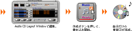 | ■お手持ちの音楽CDやサウンドファイルから、オリジナル音楽CDを作成。 | ||