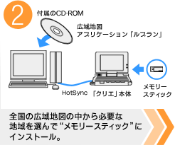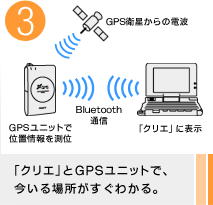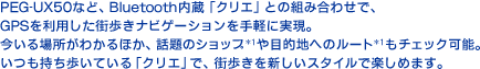 Bluetooth内蔵「クリエ」とワイヤレス接続。軽快なGPSシステムが実現。 |