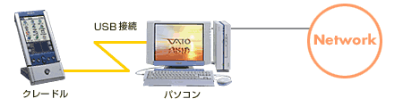 お手持ちのWindows(R)搭載パソコンに、付属のソフトウエア「Palmscape Cruiser*」をインストールすると、パソコンでアクセスしたホームページのデータを、HotSync(R)を使って「クリエ」に取り込めます。出かける前に、情報ページなどを取り込んで持ち出せば、外出先でチェックが可能です。