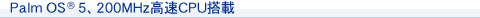 高性能なモバイルOS、Palm OS(R) 5を搭載、200MHz高速CPUを搭載しました。動画再生に、ビジネスデータの活用に、よりスピーディーで快適な環境を実現します。