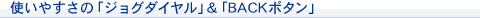 「ジョグダイヤル」&「バックボタン」で選択・決定・キャンセルといった操作も親指ひとつ。アプリケーションの起動から操作までがスマートに行えます。 |