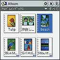 「CLIE Viewer」で管理している画像にコメントをつけて、アルバムのように編集・保存。完成したアルバムはほかの「クリエ」やパソコンでも楽しむことができます。付属のパソコンソフト「PictureGear