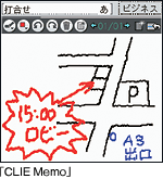 スタイラス(入力ペン)を使ってフリーハンドで書いた、手書き文字やイラストをそのままメモとして残せる「CLIE Memo」(手書きメモ)。関連する複数枚のメモはノートのページとして管理でき、メモをメールに添付して送信することも可能です。そのほか、世界の主要都市の時刻を表示する、アラーム付き時計機能「World Alarm Clock