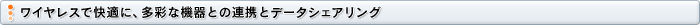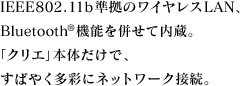 IEEE802.11b準拠のワイヤレスLAN機能内蔵により、2.4GHz帯のワイヤレスLAN環境のあるオフィスや自宅、駅、カフェ