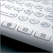 コンパクトながら、幅約103mmの横長のボディを最大限に利用したフルキーボードを搭載。文字入力のしやすさが格段に向上しました。さらに、パソコンと同じアルファベット文字配列と、独立した数字キーの採用により、使い慣れたパソコン感覚での文字入力を実現。メールやURLの入力も、ストレスなくスピーディに行えます。また、暗いところでも見やすいバックライト付きです。