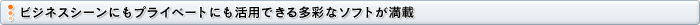 「CLIE Palm Desktop」は「予定表」や「アドレス」などを「クリエ」とパソコンで一括管理できるパソコンソフトです。外出先では「クリエ」で情報入力・閲覧し、会社や自宅のパソコンで管理するなど、毎日の情報活用がさらに便利になります。また、「Intellisync Lite for Sony CLIE」を搭載し、パソコン用の個人情報管理ソフト「Microsoft(R) Outlook」*とも相互に情報のやりとりが可能。画像やソフトも転送できます。専用ケーブルを使うほかにも、ワイヤレスLAN(IEEE802.11b)やBluetooth(R)での多彩な接続方法で、パソコンとのデータ交換がいっそう便利です。