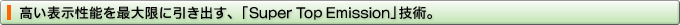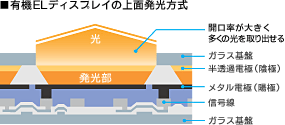 | ソニーの〈有機ELディスプレイ〉は、メタル電極の配置を上下逆転させることで開口率を高める上面発光方式。信号線の制限を受けないため、より広い発光部を確保でき、有機ELの本来の実力を発揮します。さらに独自の「Super Top Emission」技術により、発光効率を上げ、より高い色純度と高輝度を達成しています。 |