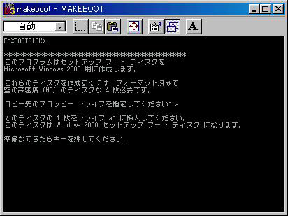されますので、「e:\bootdisk\makeboot」と入力し、「OK」ボタンをクリックします。