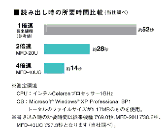 FDDのデータ転送速度が、1倍速のUSBフロッピーディスクドライブと比較し、「4倍」であるという意味です。読み出し/書き込み時間は以下のとおりです。