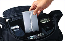 コピーできる充実のスタミナ。バッテリーを気にせずに、どんどん画像をコピーできます。さらに、耐衝撃設計が施されたボディが、大切な画像をしっかりと保護してくれます。