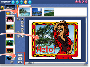 | 自分で撮影した静止画にフレームを追加したり、グリーティングカードを作ったり。 また、動画編集モードで使用するタイトルやラベルなども作れます。