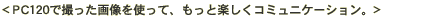 ※PC120とパソコンとのUSB接続には、別売りのハンディカム専用パソコン接続キットDPCK-US10Aが必要です。 |