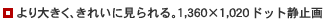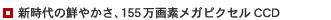 | 155万画素メガピクセルCCDにより、1,360×1,020ドット※の画像サイズを実現。高画質の静止画をパソコンに取り込み、より大きなサイズで楽しむことができます。※メモリーモード時。 |