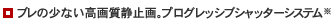 メモリーモードでの静止画撮影には、従来のインターレーススキャン方式にメカニカルシャッターを組み合わせた「プログレッシブシャッターシステム」を採用。奇数/偶数フィールドを同時に読み出し、2つのフィールド間に時間差がないように合成します。動きの激しい被写体でも、きわめてブレの少ない静止画撮影が可能です。