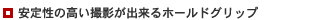 | さらに握りやすいホールドグリップを採用。ボディのフィット感を高めることで撮影時の安定性が向上、PC120の高画質撮影が、より快適に楽しめます。 |