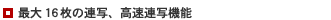 PC120では、「ノーマル」「高速」「マルチ9画面」の3つの連写モードを搭載。「高速」モードでは、“メモリースティック”への静止画撮影時に、1/15秒間隔で最大16枚の高速連写が可能です。