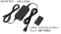 ●付属品:リチャージャブルバッテリーパック(NP‐F330)、ACアダプター (AC‐L10A)、AV接続ケーブル、ワイヤレスリモコン(RMT‐814)、Digital8用ラベルシート、レンズキャップ、撮り方ビデオ、他