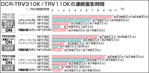 Digital8:1時間30分、 Hi8/8ミリ(再生のみ): 3時間(SP)/6時間(LP) (P6/E6-180使用) |