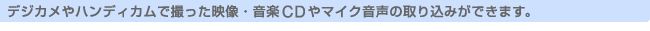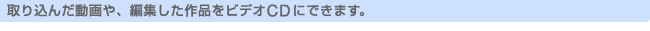 | 静止画をスライドショー形式でビデオCDに。また、思い出の映像をビデオCDに…。 タイトルや音楽も簡単に入れられます。
