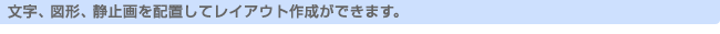 | 自分で撮影した静止画にフレームを追加したり、グリーティングカードを作ったり。 また、動画編集モードで使用するタイトルやラベルなども作れます。