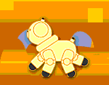 "おて"をしたとき、AIBOの肉球を触ってあげると、喜んでダンスを披露します。 |