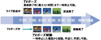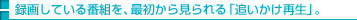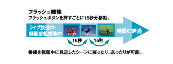 新ユーザーインターフェース、MyCast ビューの採用により、9種類のカテゴリーに分類された録画番組と、放送中の番組の中から、そのとき見たい番組をスピーディーに探し出せます。チャンネルを切り換える感覚で、リモコンの←/→ボタンでスクロールさせながらカテゴリーを選び、↑/↓ボタンでカテゴリー内に集まっている番組をサーチ。見たい番組を見つけたら、そのまま再生して楽しめます。 | ■MyCast ビューの概念図 ![]() | ||